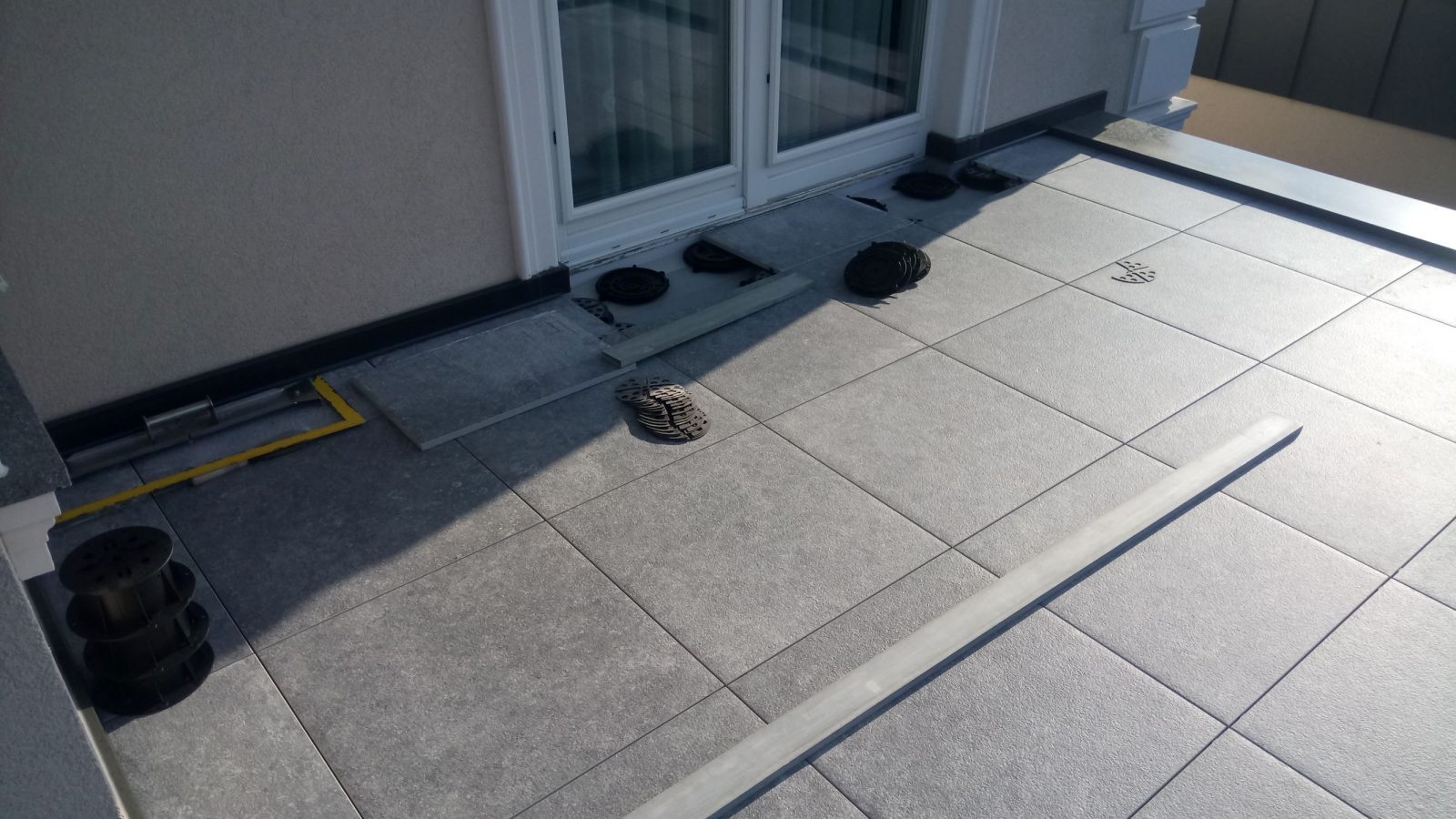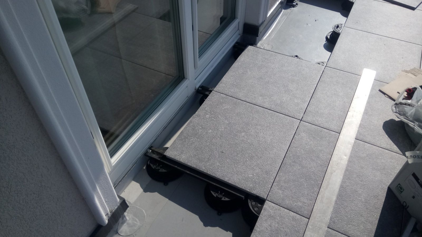 Plošče dimenzije 60 x 60 cm se enostavno obreže tudi v loku. V niši pri balkonskih vratih se lahko za polaganje manjših elementov lahko uporabi rail sistem.